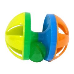 Üzerinde bulunan çıngırak sayesinde hareket ettikçe ses çıkaran tekerlek formunda kedi oyuncağı.